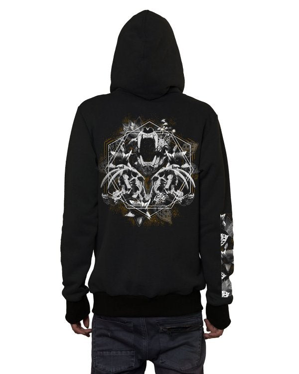 Super cool print that looks like a patch on this black hoodie - tailored especially for you. It fits itself to your body and with a unique magic hoodie it gives a dark vibe.